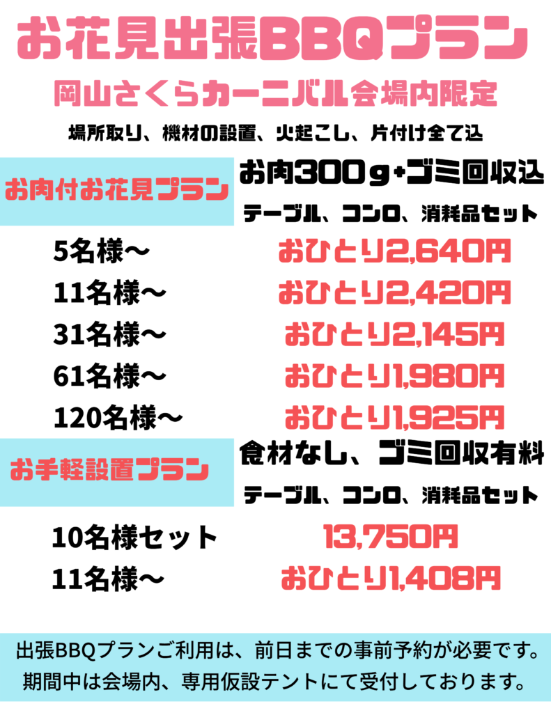 前日18時までにお願いいたします。人数、場所によっては、前日受け付けご対応できない場合があります。