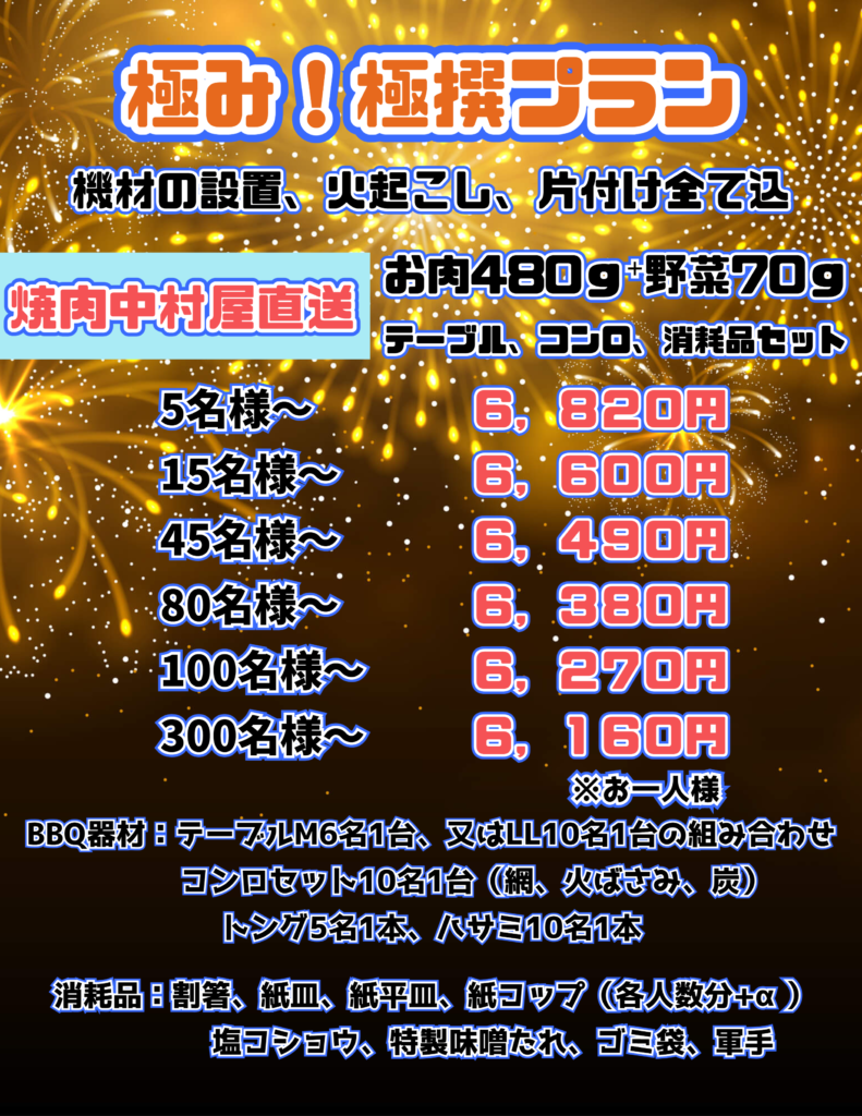 器材の設置準備、火おこしから片付けまで全て責任を持って行います。